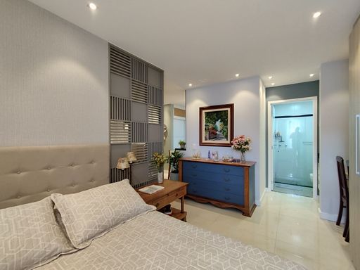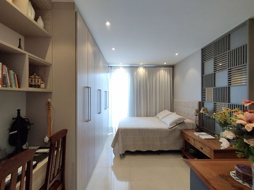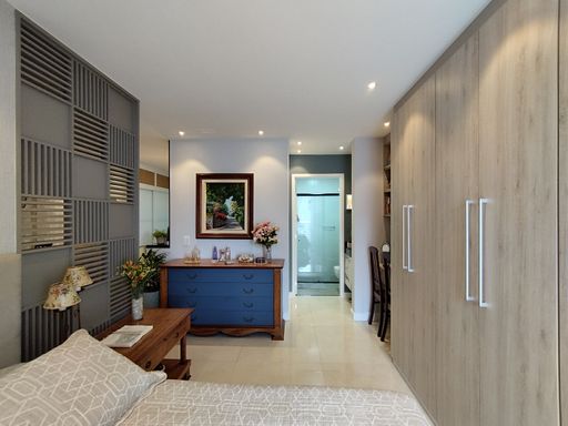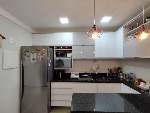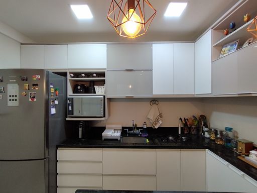 A cozinha é integrada à sala, mantendo a proposta contemporânea do loft e valorizando a circulação. O imóvel conta com 1 suíte, oferecendo mais conforto e privacidade, além de ambientes com projeto personalizado que reforçam o cuidado nos detalhes.