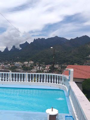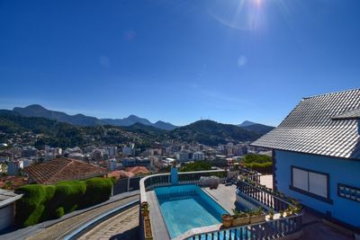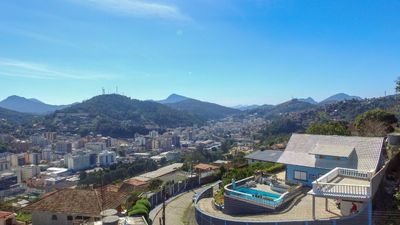 Terraço panorâmico com vista para a cidade e a Serra dos Órgãos