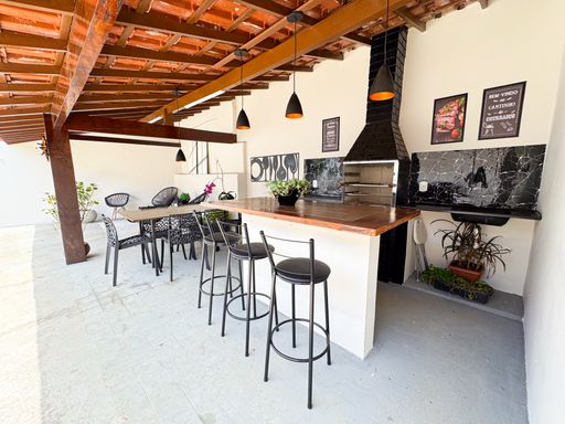 • Espaço gourmet com pia, churrasqueira e ambiente perfeito para o café da manhã