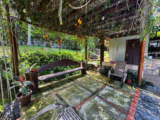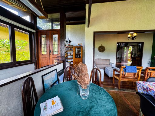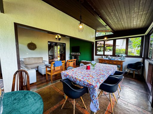 O espaço dispõe ainda de piscina com deck de madeira e ducha, casa de bonecas, canil, espaço para ferramentas, escritório, área de serviço, árvores frutíferas, horta e vagas para até 4 veículos, tudo integrado a um cenário natural e exclusivo.