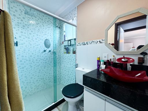 Na área íntima, o imóvel oferece 4 quartos, sendo 1 suíte com closet e varanda, além de banheiro social atendendo os demais dormitórios. A casa conta com terraço e varandas em “L”, todas com vista privilegiada, reforçando a sensação de amplitude e conexão com o entorno verde.