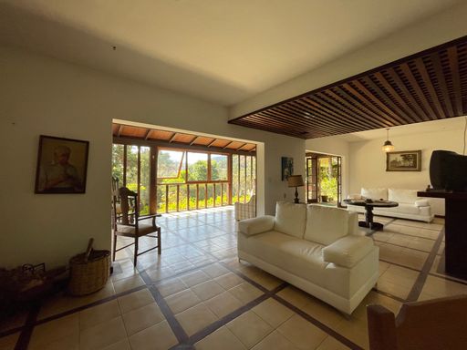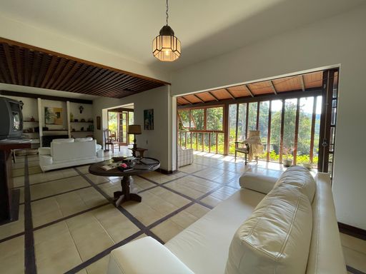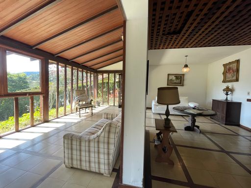 Sala ampla com 3 ambientes, integrada à varanda de inverno com fechamento em vidro e vista deslumbrante